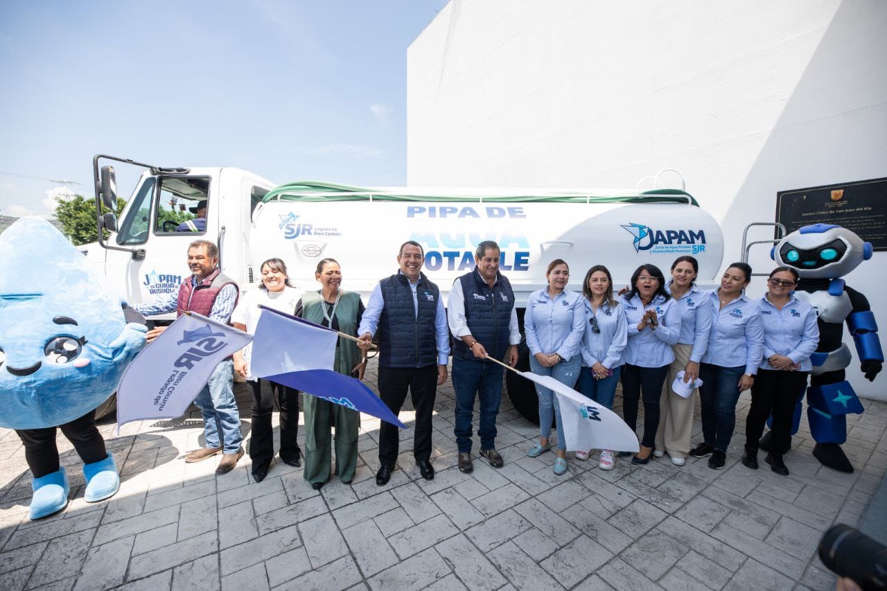 El presidente municipal de San Juan del Río, Roberto Cabrera Valencia, en equipo con el director de la Junta de Agua Potable y Alcantarillado Municipal (JAPAM) Toño Pérez Cabrera, pusieron en marcha el Programa “Agua a tu Alcance”, que consta en la instalación de 50 bebederos en distintos espacios públicos de la demarcación, así como también la entrega de dos pipas para la distribución de servicios de agua y desazolve en diferentes comunidades y colonias de la demarcación.