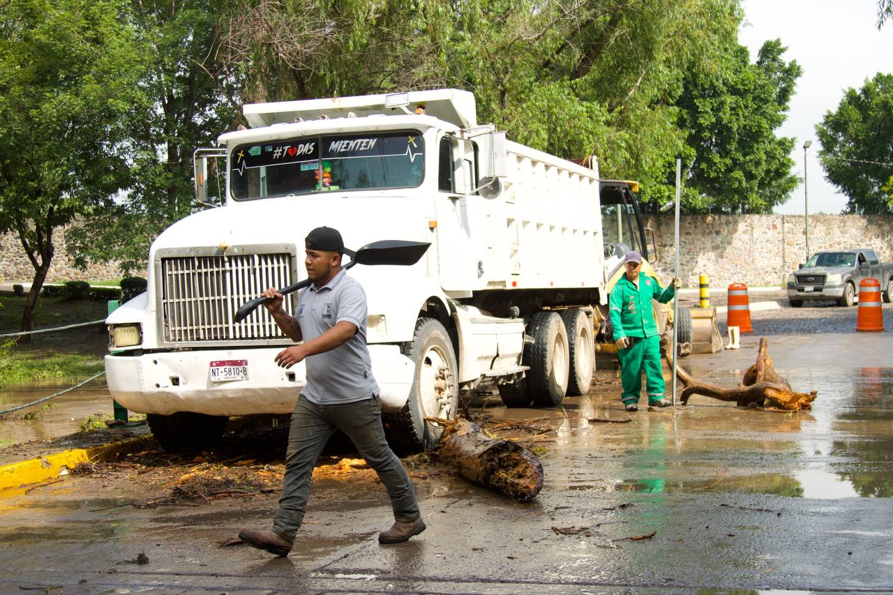 En el caso de las labores de limpieza realizadas en los pasos vehiculares el Río San Juan, mencionó, estos incluyeron el retiro de naturaleza, como troncos, ramas, hierba y hojas, principalmente, que provoca taponamientos en los pasos de agua. Durante los trabajos que se efectuaron en la zona del Paseo de los Abuelos, refirió Ernesto Mora, se retiraron cerca de cuatro toneladas de naturaleza y basura.